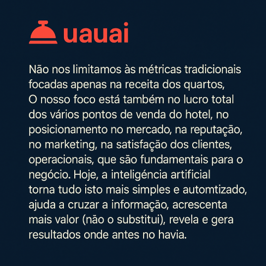 Transformar a gestão hoteleira através da tecnologia e AI, oferecendo soluções personalizadas e um atendimento consultivo de excelência, que geram resultados tangíveis.